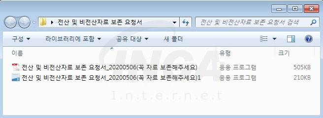 첨부된 압축 파일(‘전산 및 비전산자료 보존 요청서.zip’)을 해제하면 내부에는 2개의 악성 파일이 존재한다. 해당 파일은 PDF 아이콘으로 위장한 정보 유출형 악성코드와 한글 문서 아이콘으로 위장한 ‘Nemty’ 랜섬웨어이다.