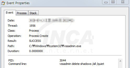 모든 볼륨 섀도우 복사본을 삭제하며 이때, quiet 옵션으로 메시지 창이 나타나지 않도록 하여 사용자가 눈치채지 못하게 한다.