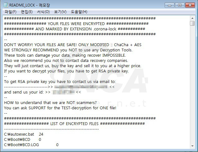 암호화가 된 후, 파일명은 ‘파일명.확장자.corona-lock로 변경된다.