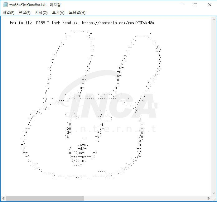 Rabbit 랜섬웨어는 파일 암호화와 함께 사용자 시스템 정보 및 화면 캡처 파일을 C2 서버로 전송한다. 또한 금전 요구 페이지가 태국어로 작성된 특징을 갖고있다. 이번 보고서에서는 Rabbit 랜섬웨어의 악성 동작에 대해 간략하게 알아본다.