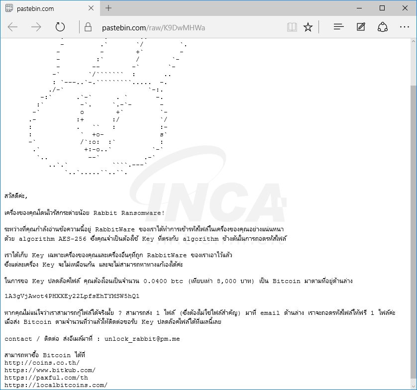 그리고 암호화 대상 폴더마다 ‘อ่านวิธีแก้ไฟล์โดนล๊อค.txt’ 랜섬노트를 생성하고, 웹 브라우저를 실행해 태국어로 작성된 금전 요구 페이지로 연결한다.