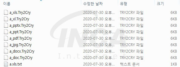 자가 복제 후 파일을 검색하여 [표 2]의 암호화 조건에 부합하는 파일을 암호화한 뒤, Try2Cry 확장자를 덧붙인다.