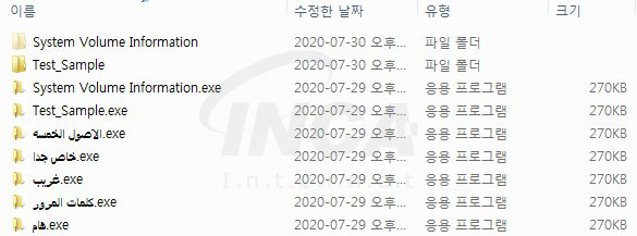 “Try2Cry” 랜섬웨어 실행 시, 시스템에서 드라이브를 검색한다. 만약 이동식 드라이브가 존재한다면 해당 드라이브의 폴더를 검색하고, 검색된 폴더와 동일한 이름으로 “Try2Cry” 랜섬웨어를 복사한다. 이후 다음 [표 1]과 같이 아랍어 파일명으로 5개의 파일을 추가 복사한다.