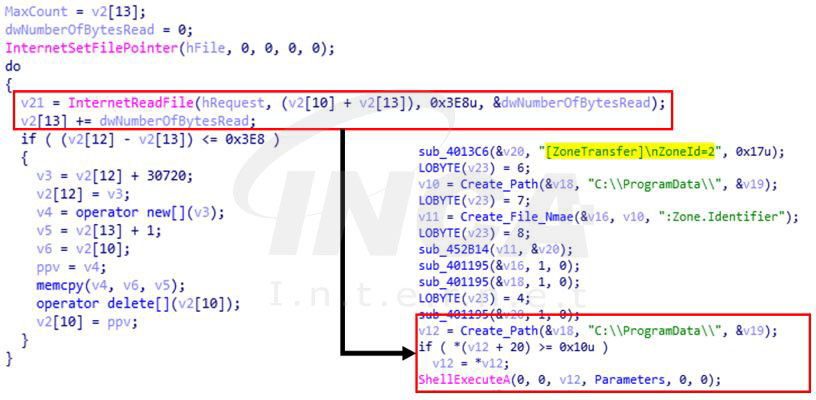 전송이 완료되면 연결된 C&C 서버에서 특정 파일을 다운로드 받아 실행을 시도하며, 분석 시점에서는 다운로드가 되지 않아 확인할 수 없다.