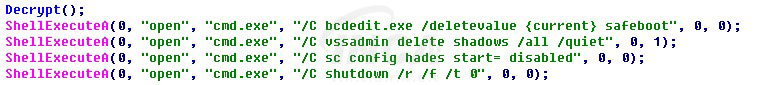 암호화 동작이 끝나면, 하기와 같이 안전모드 및 볼륨 섀도우 복사본을 삭제하고, 사용자 pc를 재부팅한다.