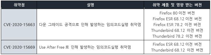 Mozilla 재단에서 Firefox와 Thunderbird 제품의 보안 업데이트를 발표하고, 관련 취약점을 해결하기 위해 최신 버전으로 업데이트할 것을 권고하였다.