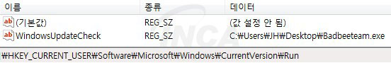 그리고 시스템 시작 시 “Badbeeteam” 랜섬웨어가 자동 실행되도록 레지스트리에 등록하고, 랜섬노트를 실행하여 감염 사실과 복구 방법을 통보한다.