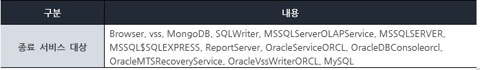 “Badbeeteam” 랜섬웨어 실행 시 ‘사용자 폴더\AppData\Roaming\Microsoft\Visio’경로에 “start.bat” 배치파일을 생성 후 실행하여, 아래 [표 1]의 서비스를 중지시킨다.