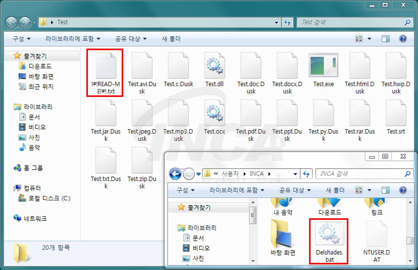 또한, 정상적인 복구를 불가능하게 하기 위해 [그림 8]과 같이 ‘%USERPROFILE%’에 “Delshades.bat”이란 이름의 배치 파일을 만들어 볼륨 섀도우 복사본을 삭제한다.