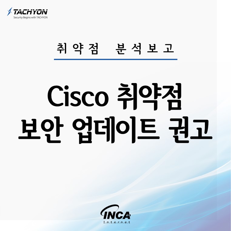 Cisco는 제품에서 발생하는 취약점에 대한 보안 업데이트를 발표하고, 최신버전 업데이트를 권고하였다.