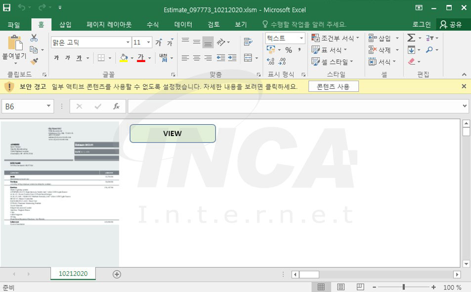 첨부 파일은 Office 파일로 실행할 경우, 자세히 보려면 컨텐츠 사용 버튼을 누르도록 유도한다.