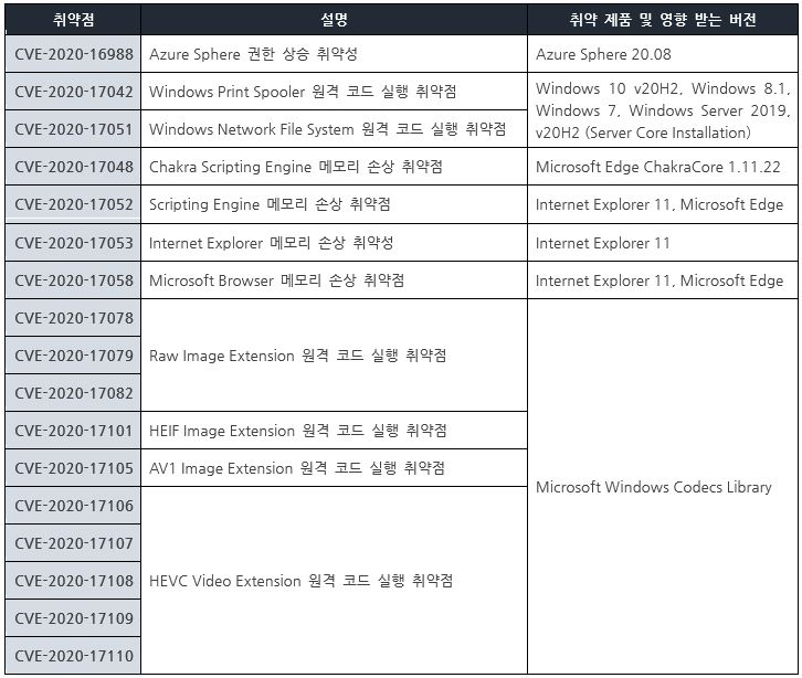 Microsoft는 제품에서 발생하는 취약점에 대한 보안 업데이트를 발표하고, 최신버전 업데이트를 권고하였다.