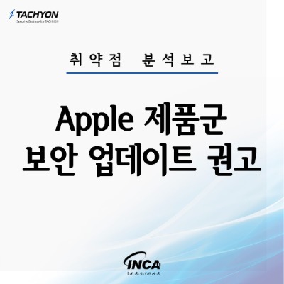 Apple사에서 자사 제품의 취약점 보안 업데이트를 발표하고, 관련 취약점을 해결하기 위해 최신 버전으로 업데이트할 것을 권고하였다.