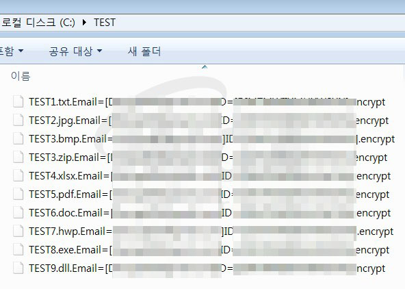 암호화가 되면 파일명은 “파일명.확장자.Email=[공격자 이메일]ID=[개인 ID].encrypt” 로 변경된다.