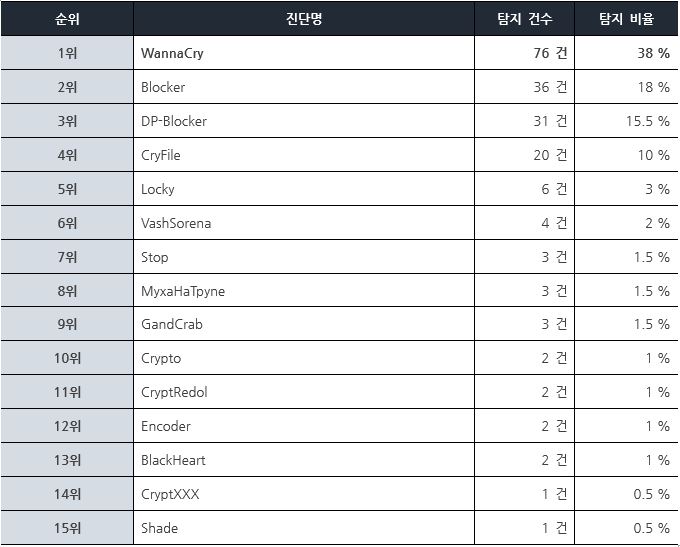 랜섬웨어 국내 진단명별 탐지 비율