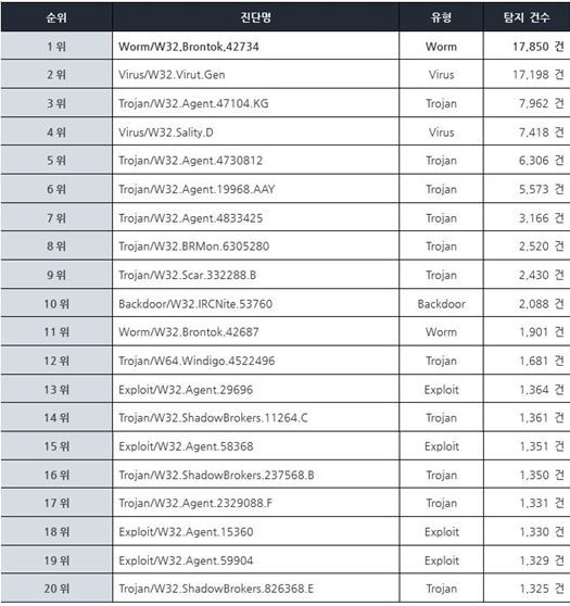 악성코드 Top20