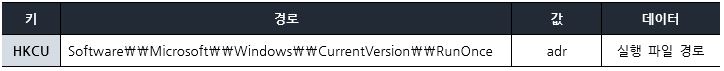 그리고 시스템 시작 시 “Krider” 랜섬웨어가 자동 실행되도록 [표 3]과 같이 레지스트리에 등록한다.