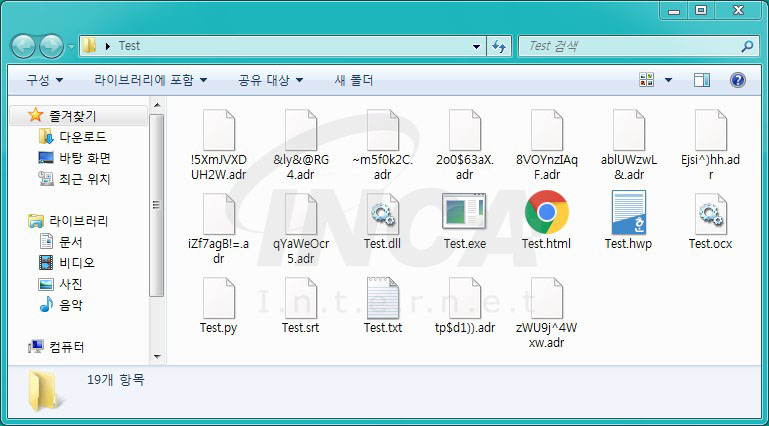 암호화된 파일은 [그림 2]와 같이 랜덤 파일명으로 변경되고 “.adr” 확장자가 붙는다.