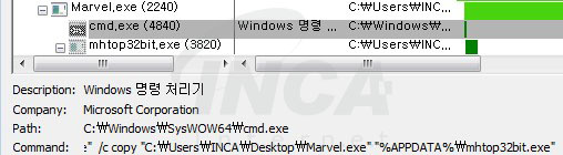 그리고사용자 폴더\AppData’ 폴더에 “mhtop32bit.exe” 파일명으로 원본파일을 복사 후 실행한다.