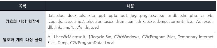 암호화는 C 드라이브를 대상으로 진행되며 “C:\Windows”와 같이 시스템 구동에 필요한 폴더를 제외한 경로에서 진행된다.