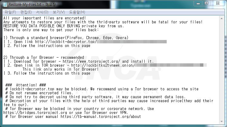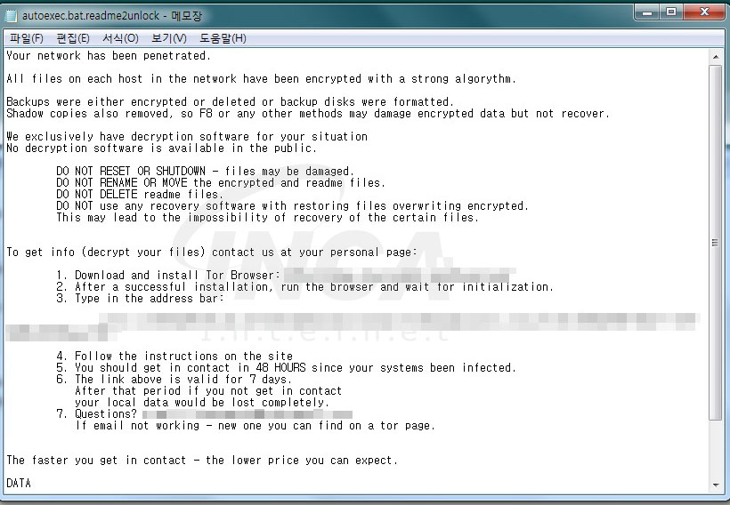 마지막으로 암호화가 완료되면 랜섬노트와 함께 지불 경로가 안내된 사이트를 띄워 랜섬머니를 공격자에게 입금하도록 유도한다.