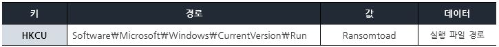 그리고 컴퓨터 재부팅 시 “RansomToad” 랜섬웨어가 자동실행 되도록 설정한다.