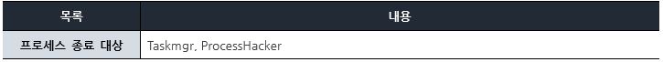 추가로, 실행 중인 작업관리자와 프로세스 해커를 종료하여 사용자가 랜섬웨어를 강제 종료할 수 없도록 한다.
