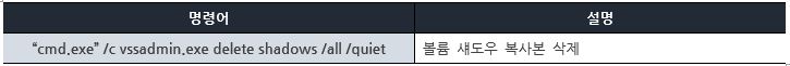 마지막으로 정상적인 복구가 불가능하도록 [표 3]의 명령어를 사용하여 볼륨 섀도우 복사본을 삭제한다.