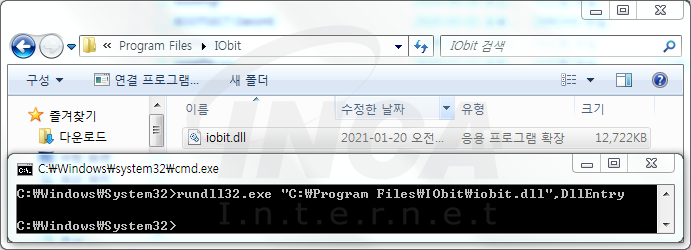 다운로드된 파일을 압축 해제한 후, IObit License Manager.exe를 실행하면 랜섬웨어 동작을 하는 iobit.dll이 ‘C:\Program Files\IObit\’에 생성된다. 이후, [그림 1]과 같이 실행하여 파일 감염을 진행한다.