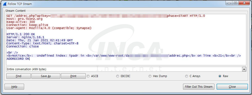 그리고 C2 서버와 연결하여 획득한 사용자 정보를 전달한다.