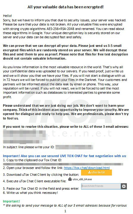 또한, 감염 동작이 이루어진 모든 폴더 아래에 랜섬노트를 생성하여 감염사실을 2차적으로 알린다.