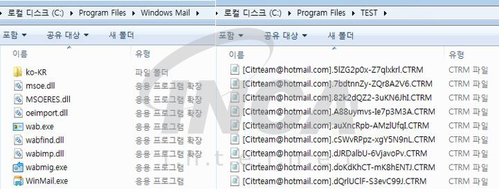 위의 악성동작이 모두 끝나면 기본적으로 존재하는 윈도우 관련 디렉토리를 제외하고 모든 파일에 대하여 감염 동작을 수행한다. 이때 일반적인 랜섬웨어와는 다르게 파일명도 임의의 이름으로 바꾸어 구별하지 못하도록 한다.