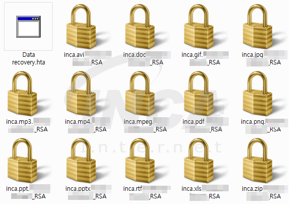 해당 랜섬웨어는 아래 [표 1]의 암호화 제외 목록에 따라 기본적인 시스템 파일을 제외한 모든 대상 파일에 대해 암호화를 진행한다. 파일 암호화가 완료되면 “임의의ID_RSA” 형태의 확장자를 덧붙이며 암호화 대상 경로마다 “Data recovery.hta” 랜섬노트를 생성하고 실행한다.
