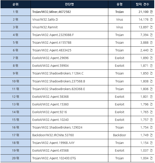 악성코드 Top20