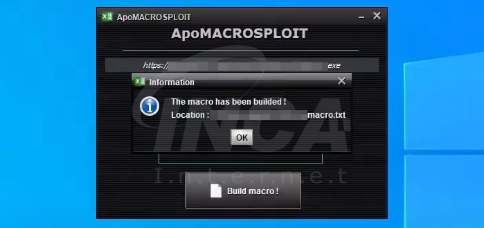 “APOMacroSploit”은 Office 매크로 악성코드 빌더로 Office 문서에 삽입 가능한 악성 매크로를 생성한다.