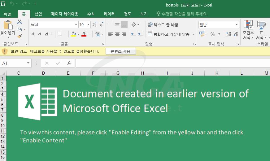 공격자들은 “ApoMACROSploit” Office악성코드 빌더로 생성된 매크로를 이용하여 악성 XLS문서 파일을 생성하고 피싱 메일의 첨부파일로 유포하였다.