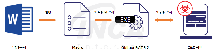 악성문서에서 “ObliqueRAT” 악성코드를 드랍하여 실행하는 방식에서, 파일을 다운로드하여 실행하는 방식으로 유포 방식이 변화되었다.