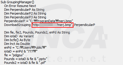 악성 문서의 VBA 스크립트를 통해 BMP 파일을 다운로드한다