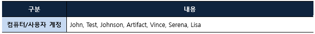 5.2 버전의 경우 컴퓨터 및 사용자 계정을 아래 [표 2]와 같이 해외에서 대중적으로 사용하는 이름과 비교한다.