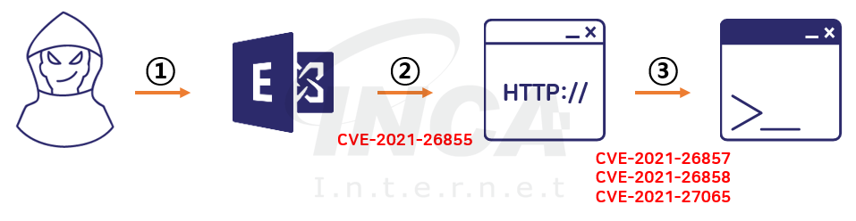 ③ 최종적으로 CVE-2021-26857, CVE-2021-26858, CVE-2021-27065 취약점을 악용한 웹 쉘을 업로드하여 원격 액세스 권한을 얻고, 공격자가 원하는 명령을 보내 감염된 PC를 제어한다.