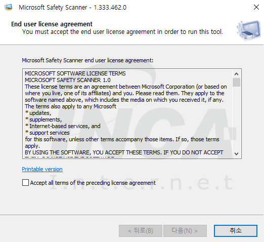 - 마이크로 소프트 공식 홈페이지 감염 여부 확인 스캐너 다운로드 :