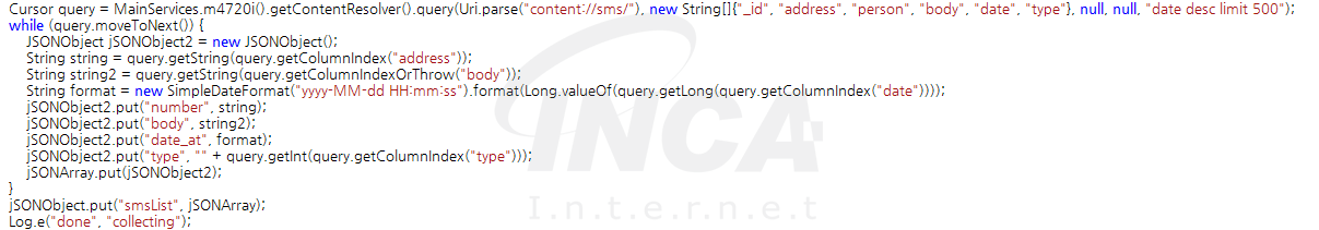 이외에도 추가적으로 SMS 문자, 연락처, 통화 내역, 녹음 파일, 녹화 파일, 설치된 애플리케이션 정보, 등을 수집하고 공격자 서버로 송신할 수 있다.