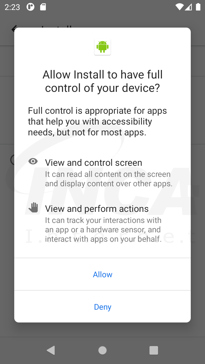 다운로드되는 애플리케이션은 BlackRock 으로 알려진 정보 탈취형 악성 앱이다. BlackRock 은 설치 시 [그림 3]과 같이 단말기에 대한 접근성 서비스 권한을 요청한다. 본래 접근성 서비스는 장애를 가지거나, 일시적으로 단말기와 정상적인 상호작용을 할 수 없는 사용자를 지원하기 위해 존재하나 BlackRock 은 이를 악용하여 정보 탈취에 이용한다.
