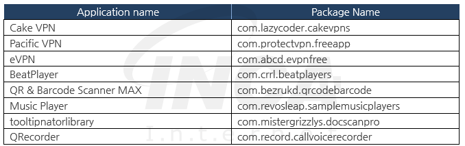 하기의 표와 같이 Clast82는 VPN을 비롯하여 여러 종류의 정상 앱으로 위장하였다.