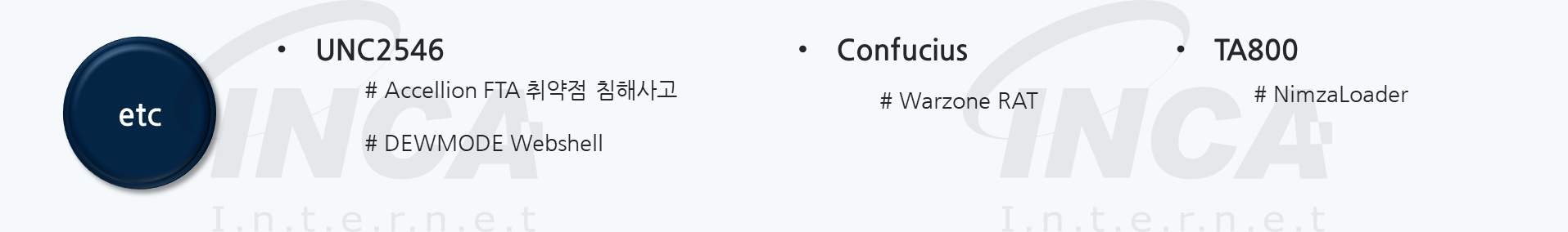 UNC2546으로 명명된 해커 그룹은, 제 2의 SolarWinds 사태로 불리우는 Accellion 사의 파일 공유 서비스인 FTA 취약점 침해 사고의 배후 세력으로 지목되며 이름을 알렸다. 해당 공격으로 인해 FTA 서비스를 이용하는 전세계 여러 기업 및 국가기관들에 대한 공격 사례가 발견되었으며, 일부 기업의 경우 Clop 랜섬웨어의 데이터 유출 사이트인 “CL0P^_-LEAKS” 사이트에 유출된 정보가 게시되었다.