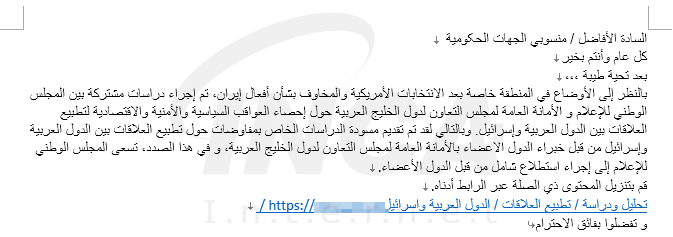 2월경, 해당 그룹은 피싱 이메일을 통해 아랍 국가와 이스라엘간의 관계에 대한 보고서나 장학금 관련 내용으로 위장된 악성 문서를 유포하였다. 첨부된 악성 문서에는 파일 공유 서비스인 OneHub의 링크가 포함되어 있으며, 해당 링크를 클릭할 경우 원격 연결 및 화면 공유 기능을 지원하는 도구인 ScreenConnect를 다운로드한다. 공격자들은 해당 소프트웨어를 이용하여 감염환경에서 공격자의 추가 명령을 수행하거나 정보를 탈취한다.