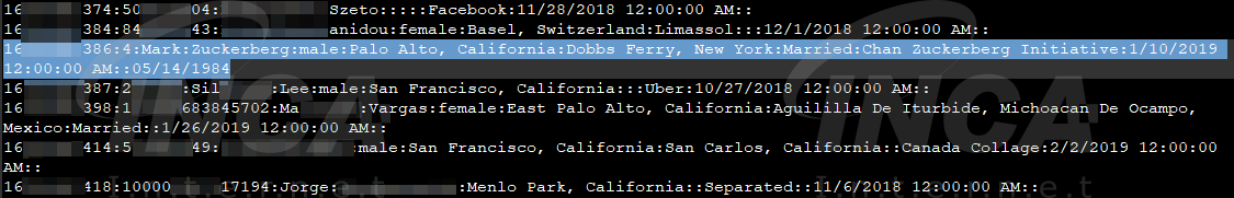 무료로 공개된 미국 사용자의 데이터에는 Facebook의 설립자인 Mark Zuckerberg의 개인정보도 포함되어 있다.