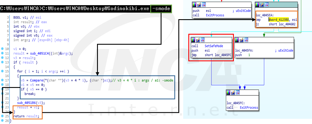 “Sodinokibi” 랜섬웨어를 실행할 때 [그림 1]과 같이 “-smode”를 인자로 전달하면 재부팅 후 안전모드로 진입하여 감염한다.