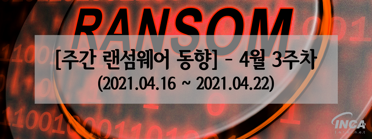| [주간 랜섬웨어 동향] – 4월 2주차 (0) | 2021.04.16 |